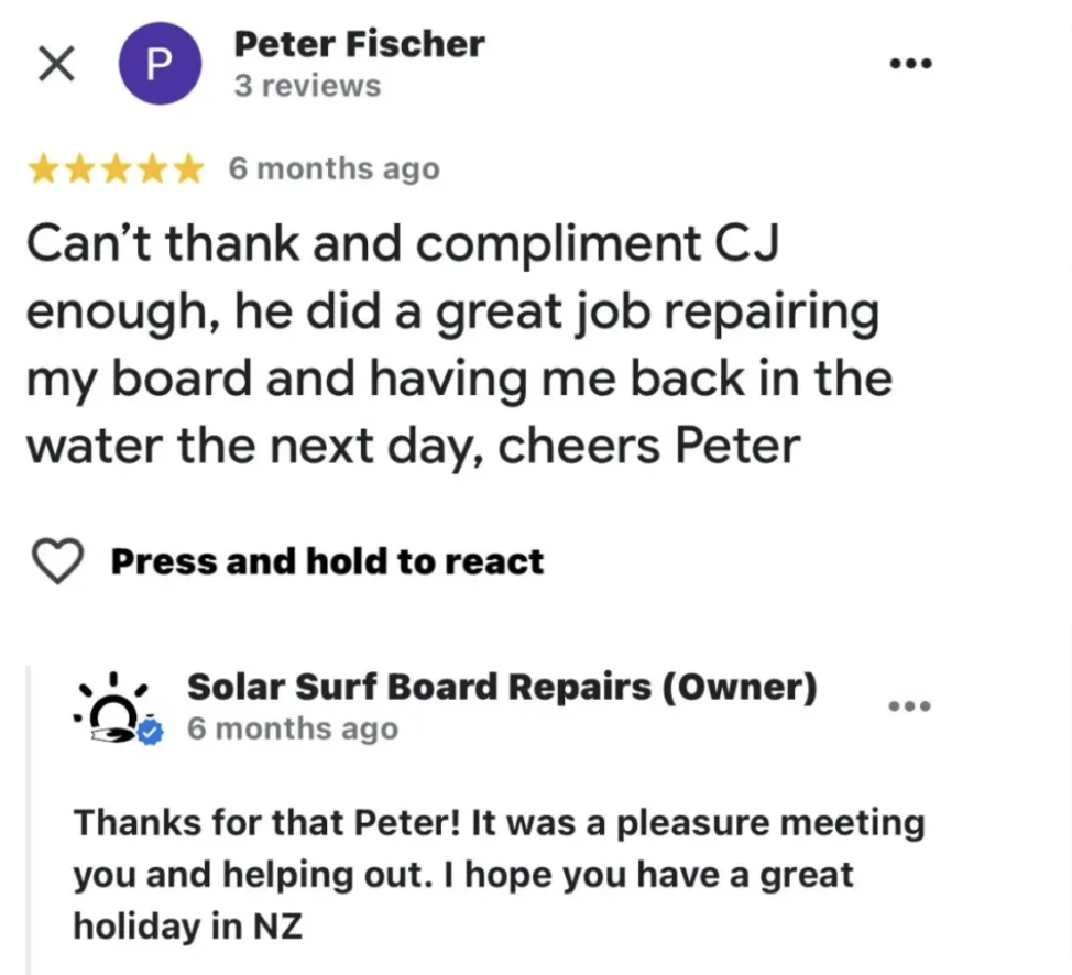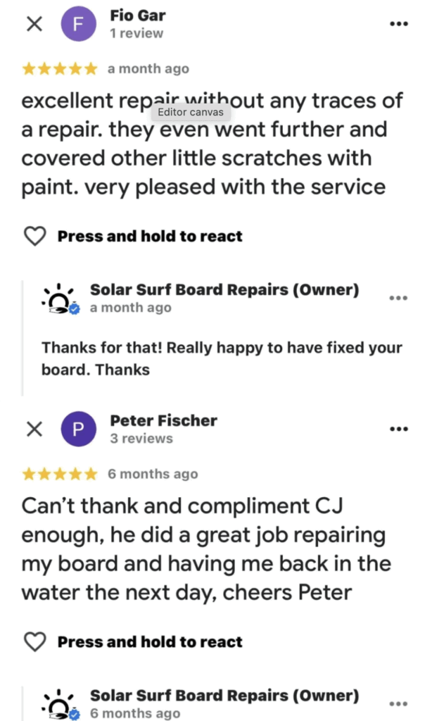 Quality local Surfboard repairs located at the Mount Maunganui.
