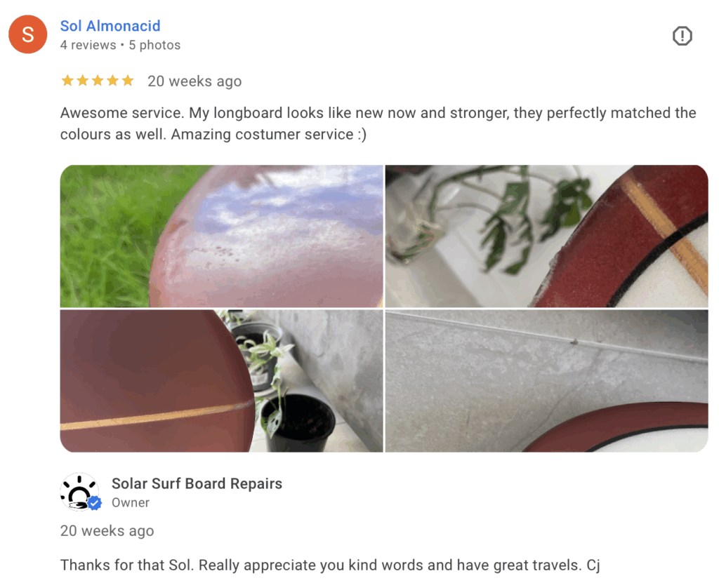 At Solar Surf, we take pride in providing the highest quality repair services for all kinds of boards. With over 20 years of experience in the surfboard manufacturing industry, we specialize in fixing dings, gauges, punctures, slices and more. We understand how important it is to get you back in the water as soon as possible and we strive to make sure your board is as good as new. Visit our workshop in Mount Maunganui or give us a call – we’re here to help. (and if im out Mike can help in unit9) Board repairs quoted before we go ahead.