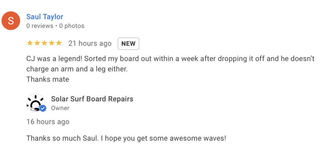 Over 20 years experience repairing and manufacturing surfboards